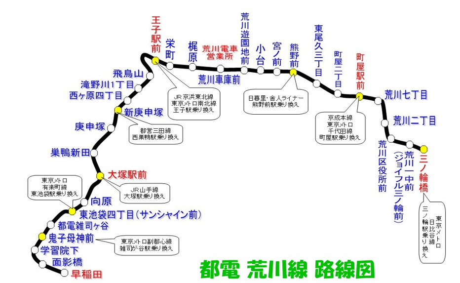 時間の制約もありますので、今回のツアーでは、早稲田駅、鬼子母神前駅、都電雑司ヶ谷駅、荒川車庫前で降り、その後庚申塚駅まで戻ります。おおよそのルートは下記の通りです。